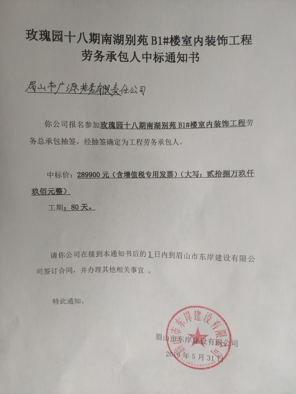 玫瑰園十八期南湖別苑b1#樓室內(nèi)裝飾工程中標(biāo)通知